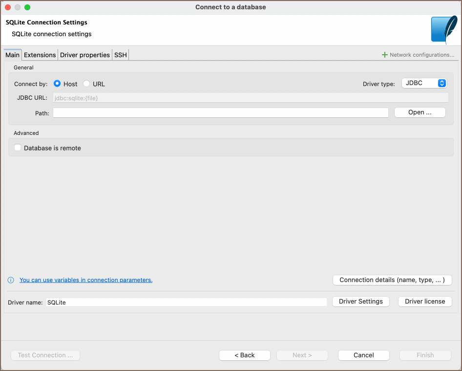 | Database is remote | If the SQLite database resides on a remote server, check this box. Reed more. |