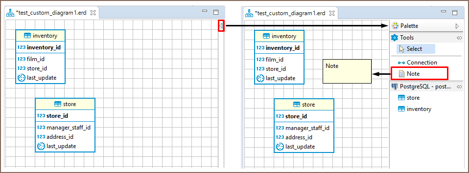 ) in the upper-left corner of the diagram tab. Then, in the Palette panel, click Note and click anywhere in the diagram tab. Now you can double-click the Note box to enter the note text: