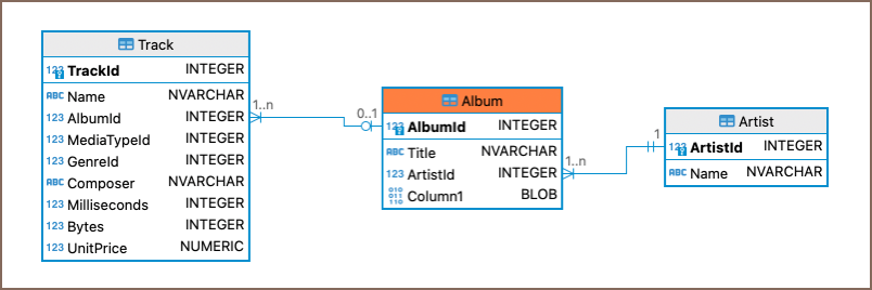 * Add new tables to a diagram by drag-n-dropping them onto the diagram field from the Database Navigator.