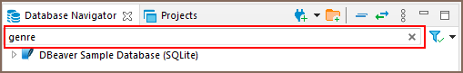 To filter objects by name, type the object name in the field. The tree dynamically updates to show connections/containers/tables/views with that name. To reset the filter, click the Clear icon (
