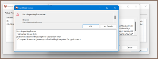 Sometimes an email client can corrupt the formatting of the License Key that can cause an error.