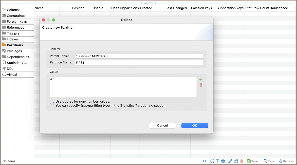 Besides using the GUI for creating partitions, you can also create partitions through the SQL Editor. For instructions on using the SQL Editor for partitioning, refer to the Creating Partitions using SQL Editor section.
