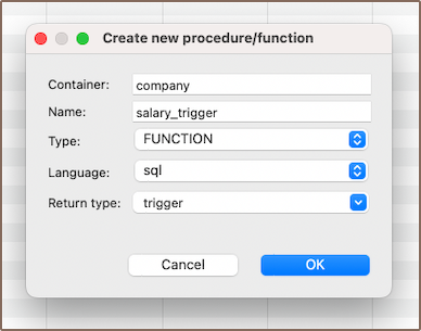 | Return Type | This specifies the type of value the function will return. For a trigger function, this is usually specified as trigger. |
