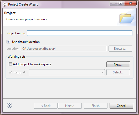 - To keep the default location to store the project, leave the Use default location checkbox selected. If you want to change the location, clear the checkbox and enter the name of the new directory into the Location field or click Browse and select the directory in the folder tree.