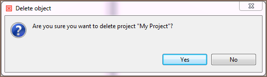 - Delete object dialog box is to confirm the deletion of the project itself. Click Yes if you are sure you want to delete it. Otherwise, click No.