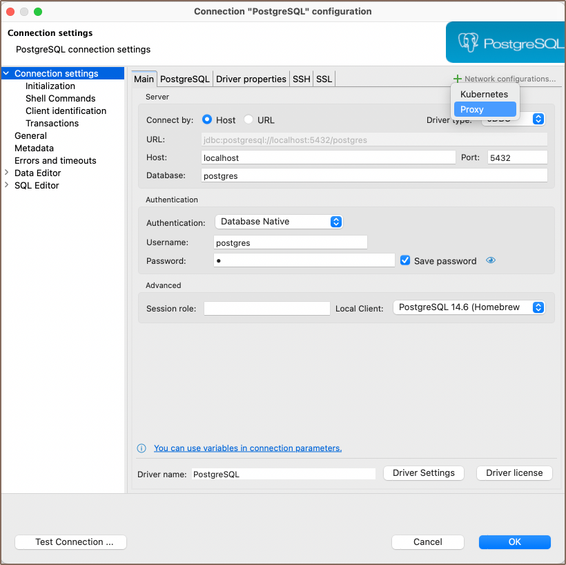 How to configure a proxy for external databases access