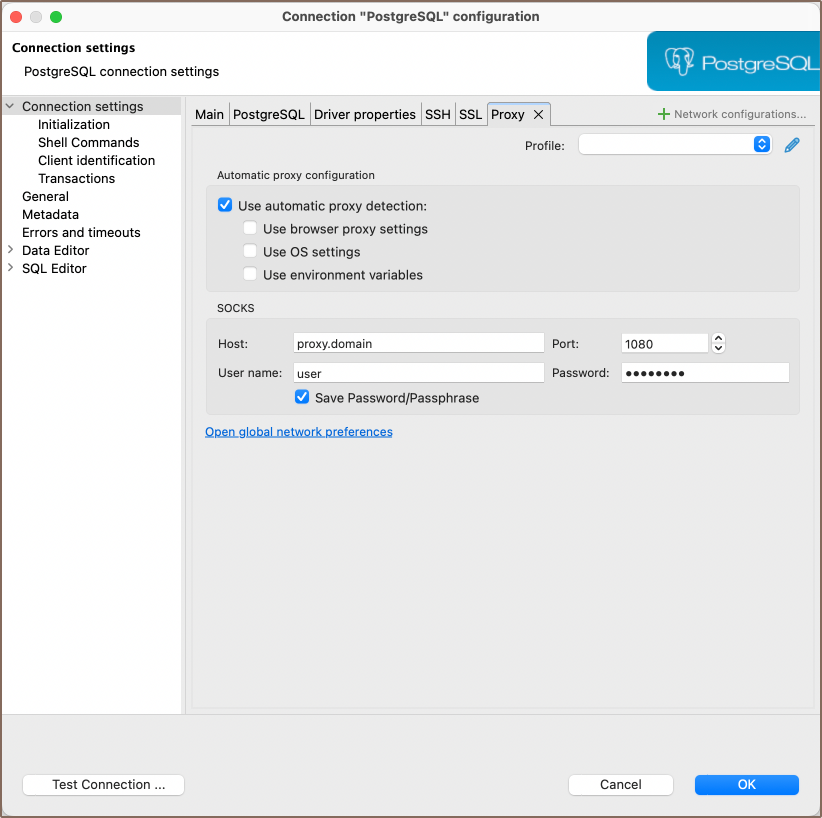 You can configure proxy settings for an individual connection.