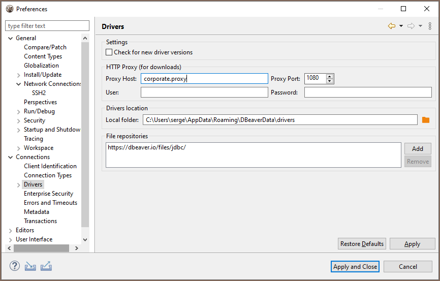 How to configure a proxy for drivers download