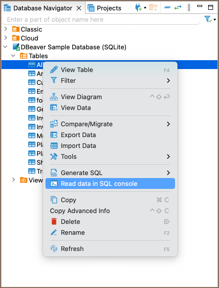 Tip: Pressing Ctrl+S will transform the SQL console into a SQL editor, enabling more extensive modifications.