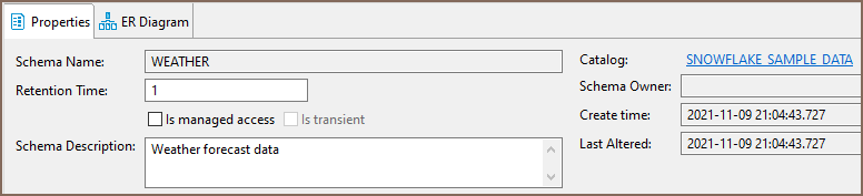 | Database* | Database name | SNOWFLAKE_SAMPLE_DATA |