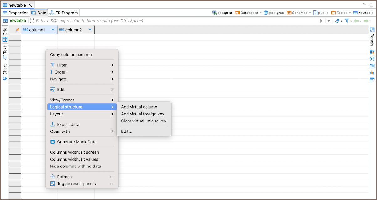 You can also create virtual foreign keys in the ER Diagrams by dragging and dropping columns. This shows the foreign key connections between tables visually, making it easier to see how your database is structured.