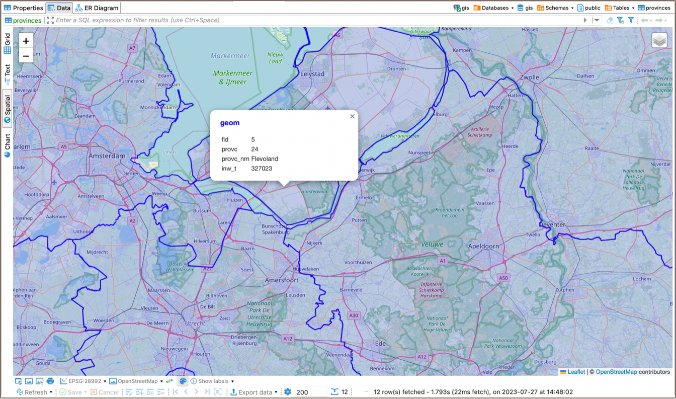 - The ST_Intersects function then finds any spatial objects in the provinces table that intersect with this rectangle.