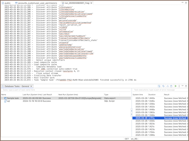 You can look through the task execution logs on the right side of the tasks view. By double-clicking on a task run item, you can see the full log with all details, errors, and warnings: