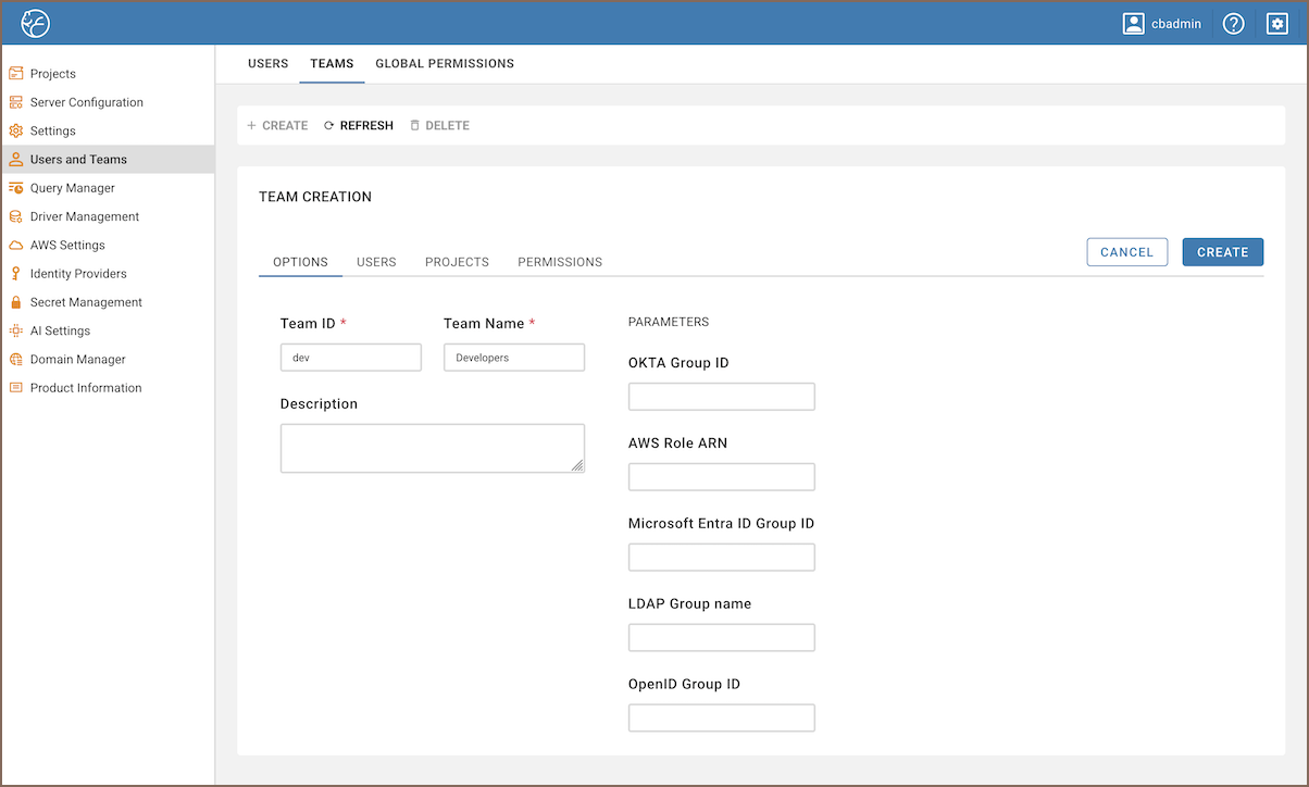 Teams can be linked to external identity providers, allowing automatic user assignment based on group information received at login.