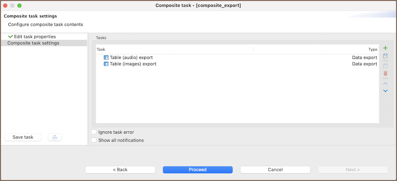 After setting up the tasks, click Proceed to save and start the composite task.