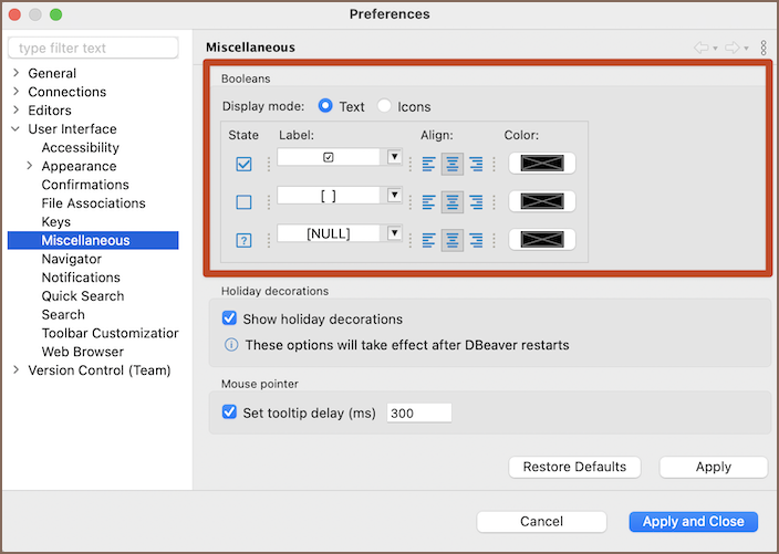 | Database native | Presents data as it appears in the database without additional formatting, reflecting the raw values. |