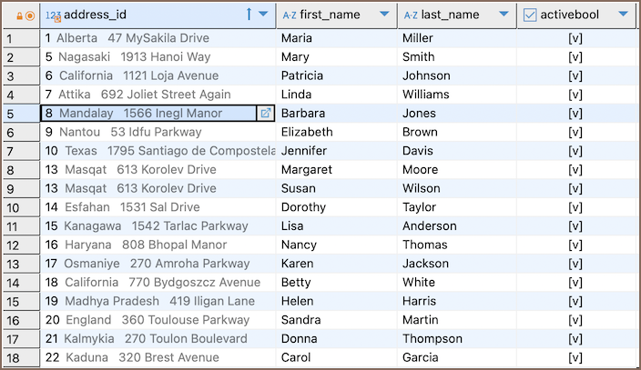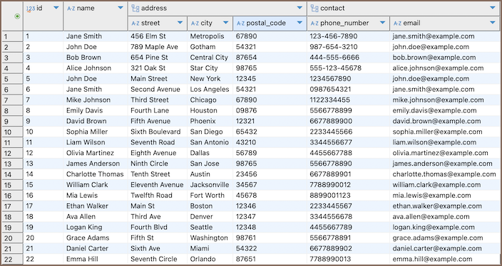 By default, data appears in the Table view, where rows and columns are organized like a spreadsheet.