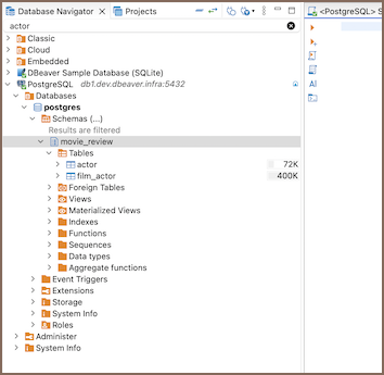 Database Navigator is the main tool in Team Edition for working with database structure and data. It shows a tree of objects - like connections, schemas, tables, and views - based on your database type.