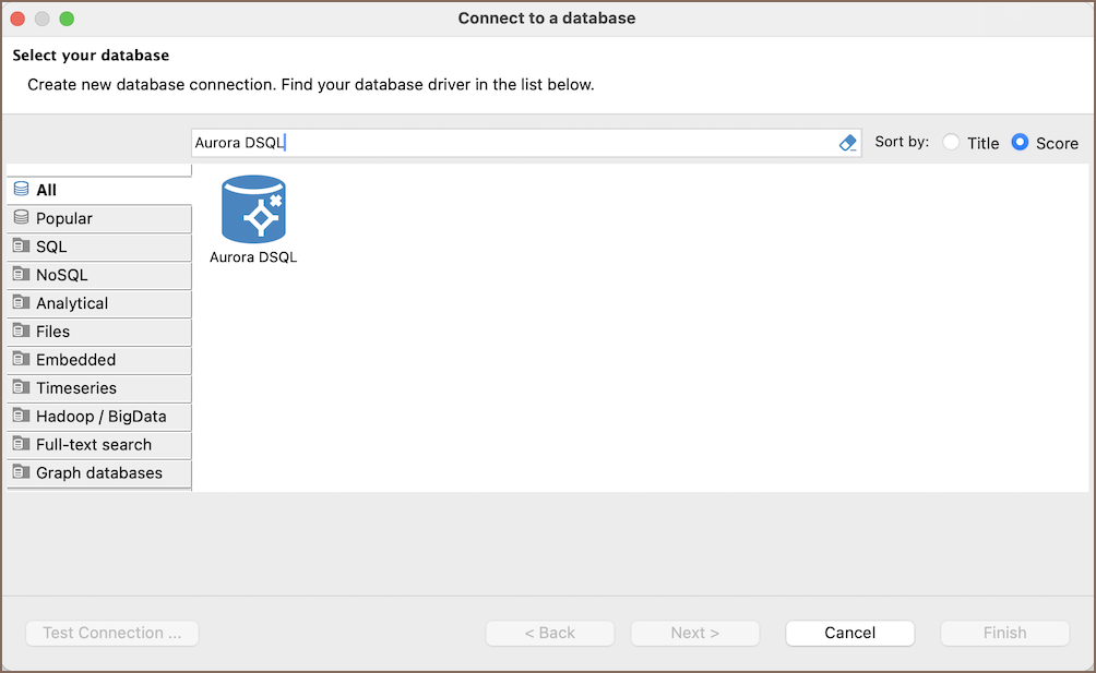To get started, select the Aurora DSQL driver when creating a new connection. For step-by-step instructions, see