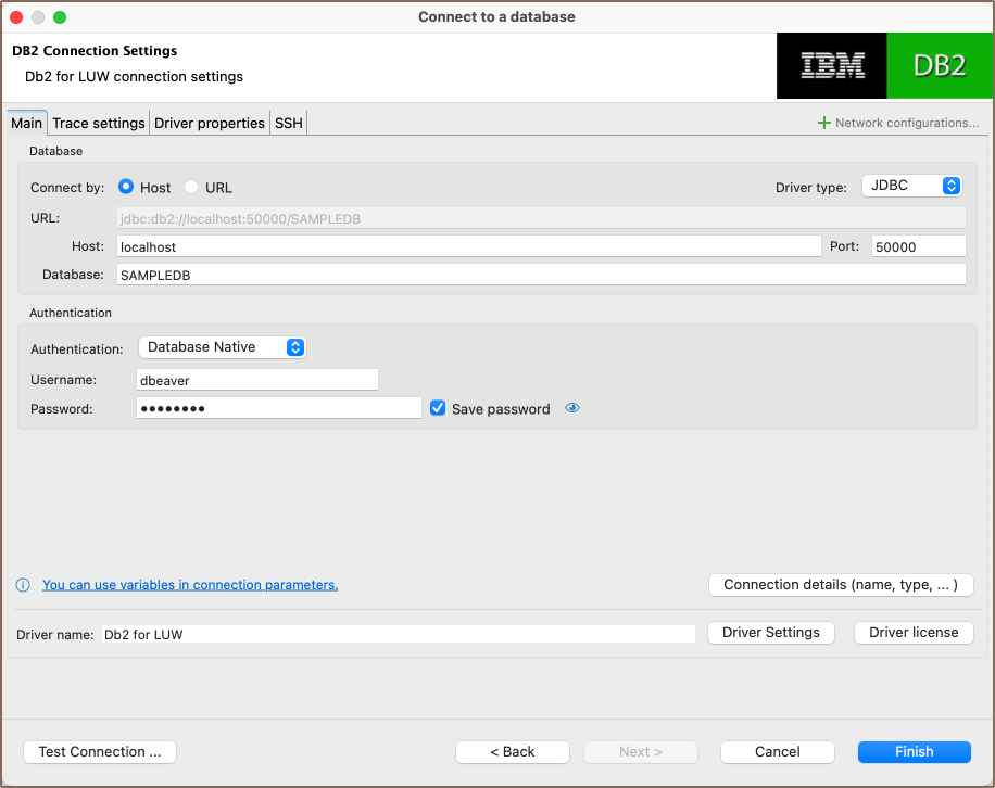 | Driver Type | Select the appropriate driver for your Db2 database. |