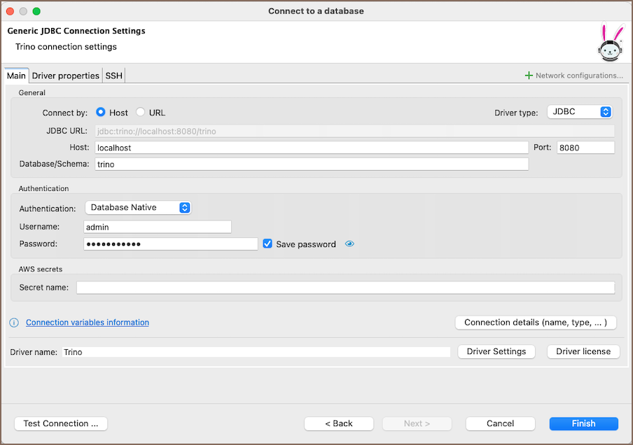 Trino connection settings¶