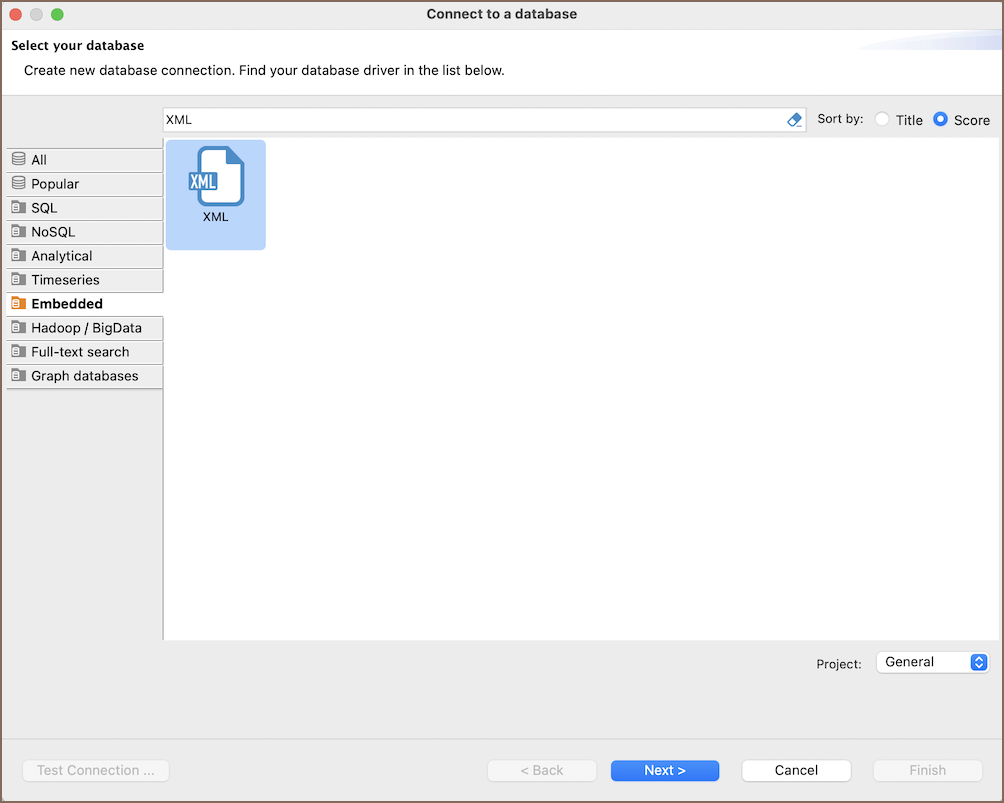 You can open and work with XML files stored in your Cloud Storage directly in Team Edition. Double-click a file to create a temporary connection. Files opened during a session appear in the File databases folder in Database Navigator. These temporary connections are removed when you close Team Edition.