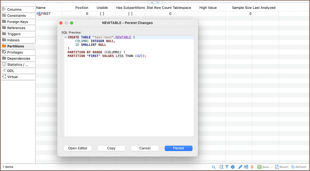 Creating Partitions using SQL Editor