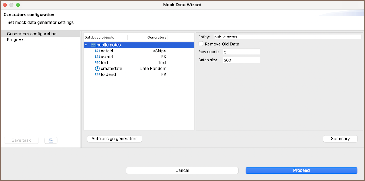 After launching the Mock Data Wizard: