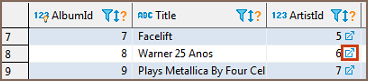 Another way is to right-click such a cell and click Navigate -> Navigate link on the context menu. The linked table opens in the same editor, filtered by the cell value: