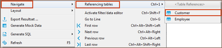 The referencing table opens in the same editor. To navigate back and forth between the initial and referencing tables, use the history navigation buttons () in the top toolbar of the editor. In order to open a referencing table in a new window use the Ctrl+Shift+1 shortcut to the show menu.