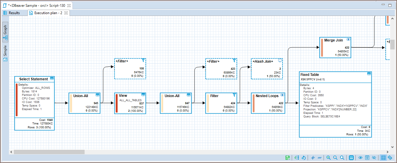 If a database driver supports the visualization of the execution plan, you can see the execution plan of the current query (under cursor) by pressing Ctrl+Shift+E or clicking Explain execution plan on the context menu or in the SQL Editor toolbar: