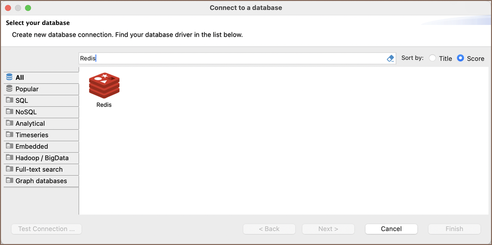selecting the Redis option to connect to the Redis. If you have not yet created a