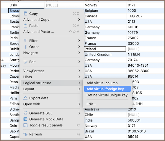 - Select Logical structure -> Define virtual unique key/Add virtual foreign key