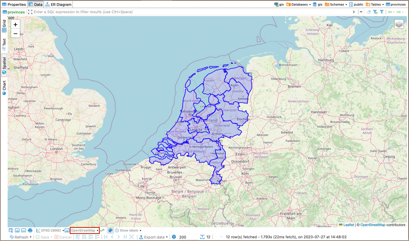 ST_Intersectsfunction then finds any spatial objects in the provinces table that intersect with this rectangle. - The