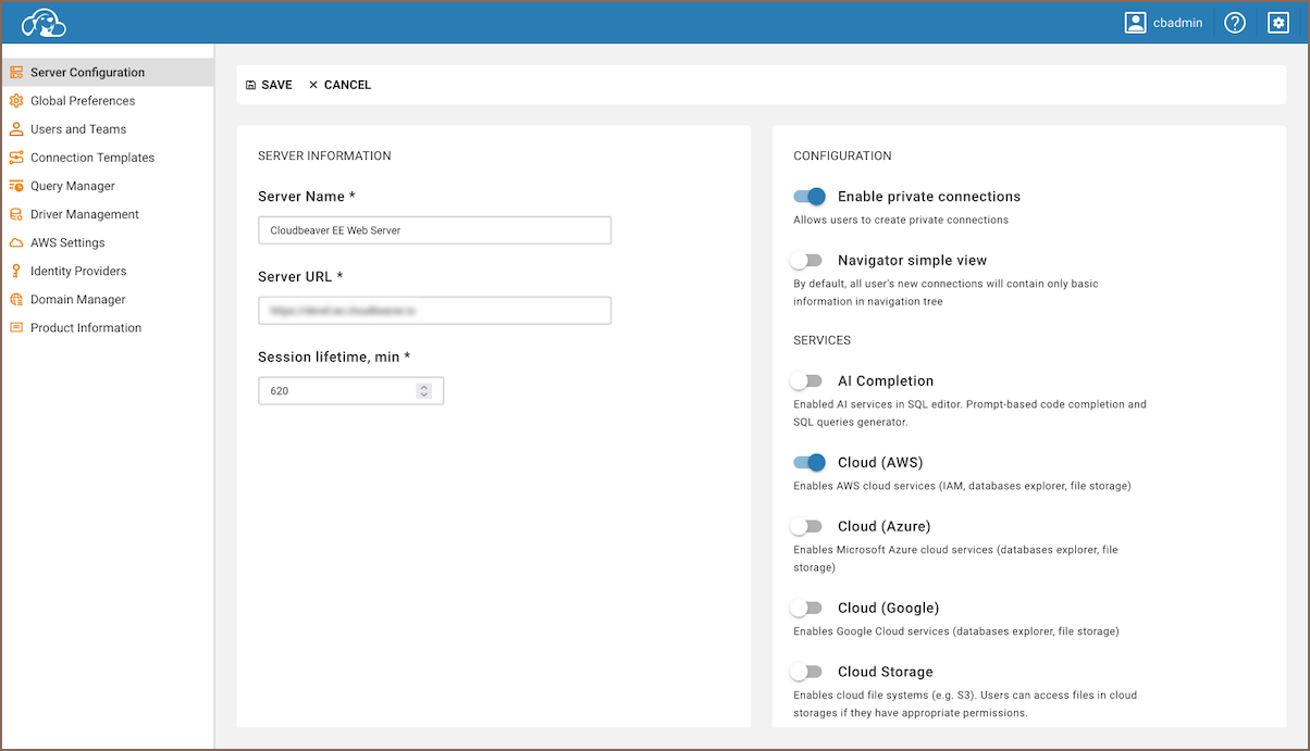 - As an administrator, go to Settings -> Administration -> Server Configuration -> Configuration.