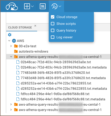 After configuring your cloud provider, you can work with the data files. Navigate to Tools -> Cloud Storage to access it.