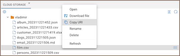 You can also open and query data files stored in your cloud buckets, such as .csv, .json, .xlsx, .xml, and