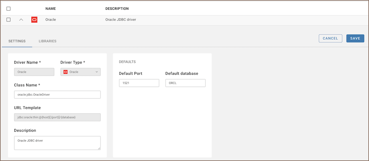 - Open the Libraries tab of the required driver in Administration -> Driver Management.