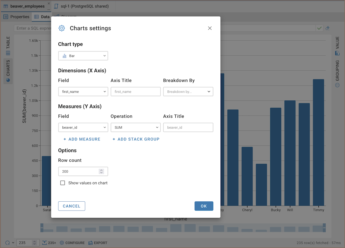 Creating Charts in the SQL Editor¶