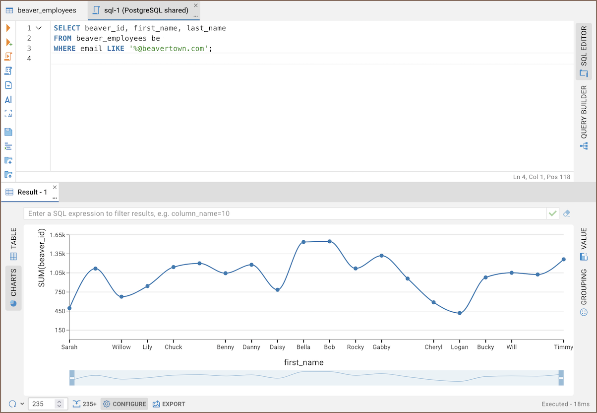 ) on the left toolbar in the result area. - Your data will appear as a chart.