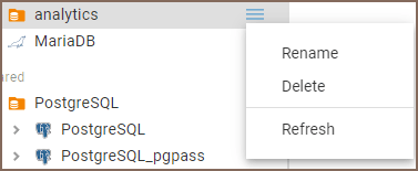 Users can conveniently group and store connections using folders in the Database Navigator. Folders can be created by any logged-in user in the Private project, and by administrators in the Shared project.