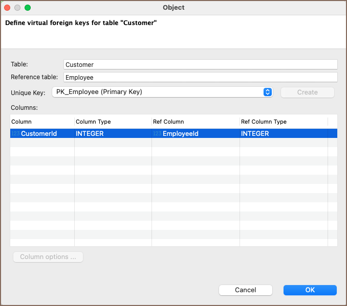 Relationships created in custom diagrams are stored as virtual foreign keys.