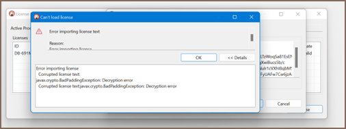 Sometimes an email client can corrupt the formatting of the license key that can cause an error.