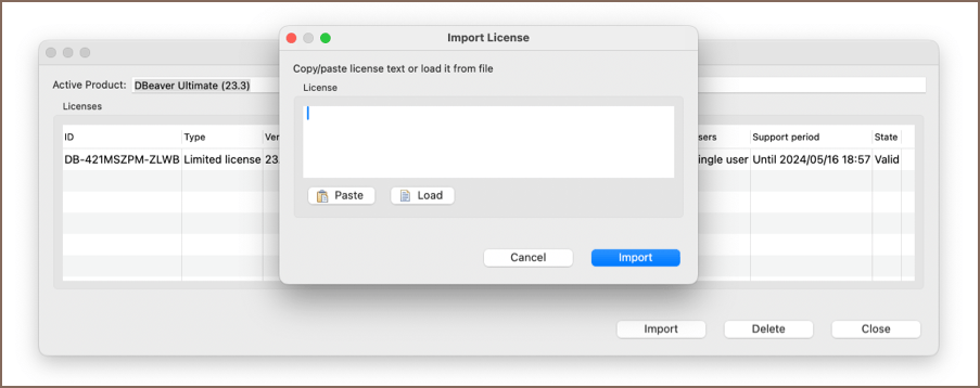 - If you copied the license key to the clipboard, press the Paste button and then Import.