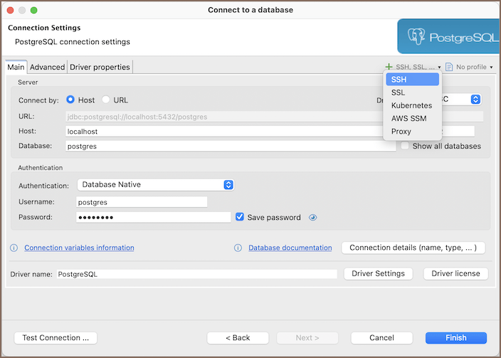 Sometimes the database cannot be accessed directly, in such cases you can use the SSH tunnel. The SSH or Secure Shell is a network communication protocol that allows two computers to communicate and encrypts the shared data.